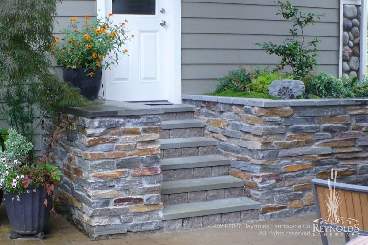 - rl web portfolio wall davi mixed ledgestone planters and solid bluestone treads