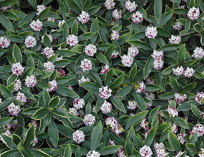 Dan Hinkley, one of my horticulture professors, would say, “Everyone needs a Daphne in their yard.” I wholeheartedly agree. These broadleaf evergreen shrubs are densely branched with glossy green leaves edged with a band of yellow or white. One remarkable benefit is that they have a sweet scent in mid-winter that turns intensely fragrant in February and March when their reddish-purple flower with creamy pink throats bloom.